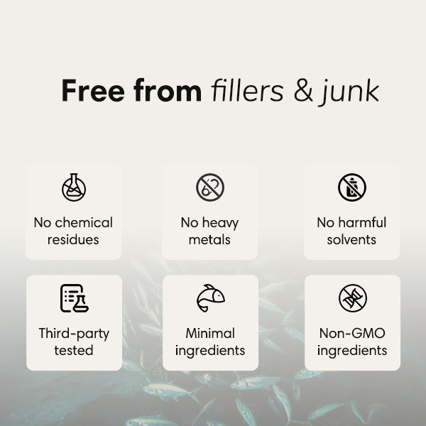 Our Omega-3 capsules deliver potent, high-quality fish oil, ensuring purity, effectiveness, and a sustainable choice you can trust.